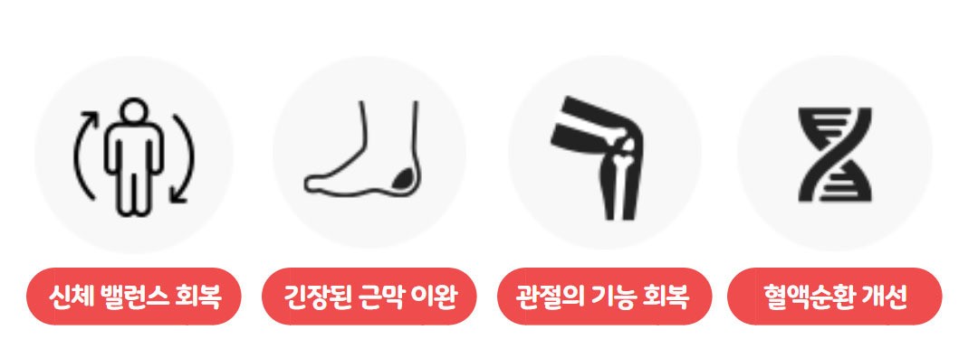 1경 · 요추 디스크, 거북목(일자목), 척추측만증, 척추관협착증 등 척추 질환 2안면마비, 손 · 발저림, 수근관증후군, 좌골신경통 등 신경계질환 3어깨결림, 오십견, 회전근개 손상, 무릎 및 발목 등 관절질환 4두통, 어지럼증, 안면마비, 하지불안증 등 자율신경계 질환 5만성 근육통, 신경통 및 골관정 통증등 만성 퇴행성 질환